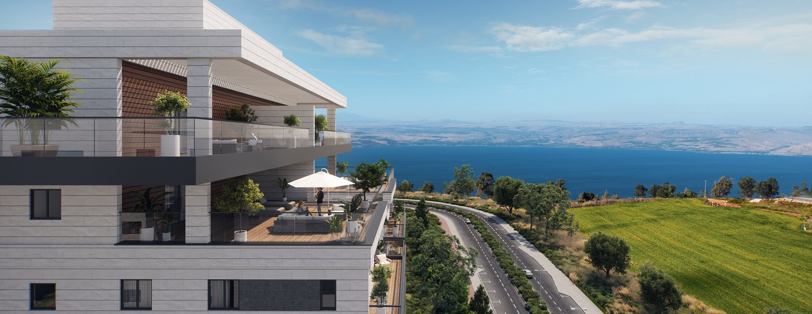 Luxury Apartments in boutique buildings with breathtaking views over the Kinneret and Hills of the Galilee. On the Poriyah ridge in the new HaMoshava neighborhood of Tiberias, enjoy quality of life, nature and quiet, while easily connecting to the rest of the country.